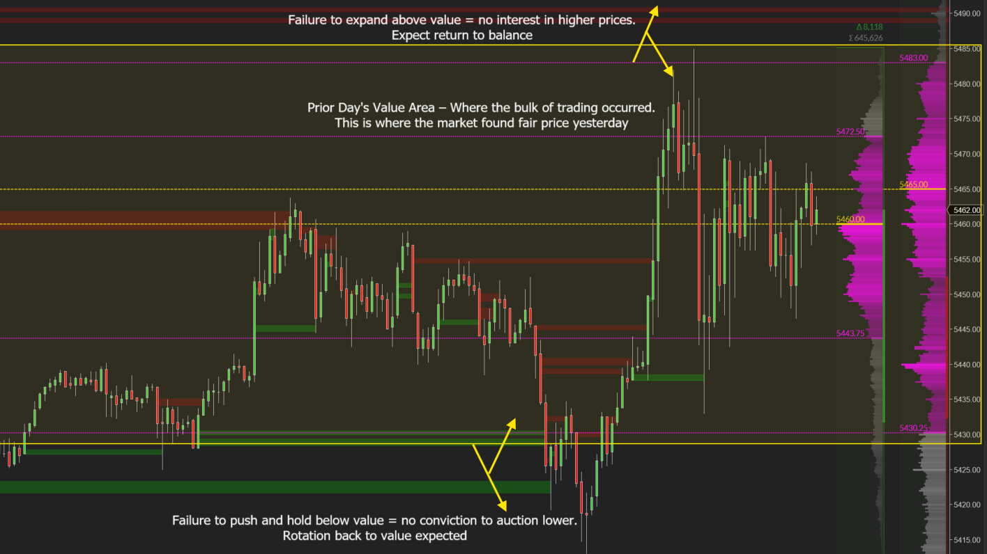 This second chart shows the same concept on a tighter scale, the prior day’s value area.
