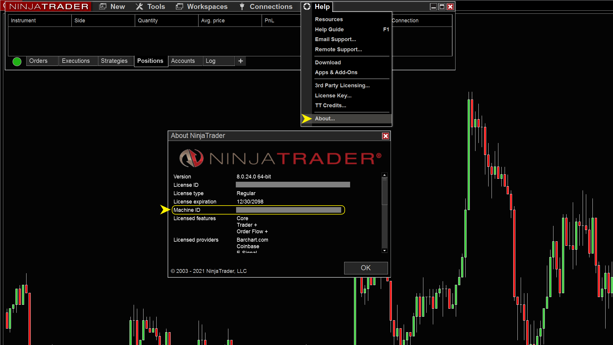 Help > About > Machine ID.